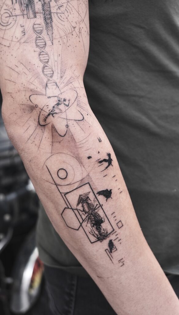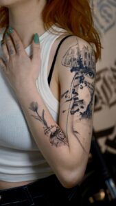 Ahmet Solmaz’ın illüstratif dövmeleri, çizgi ve detaylarla zenginleştirilmiş sanatsal anlatımlardır. Her tasarım, hikâye anlatımını ve görsel ifadeyi birleştirir. Minimalist çizgilerle başlayan ve detaylı gölgeleme teknikleriyle derinlik kazanan bu dövmeler, her bakışta yeni bir anlam keşfetmeyi sağlar.